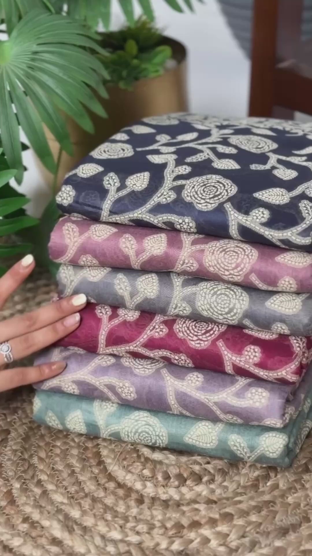 The saree is beautifully enhanced with a cotton organic floral print, giving it a fresh, natural, and sophisticated appeal. Paired with a matching unstitched cotton silk blouse piece featuring coordinated organic print, it allows you to customize the blouse design according to your personal style and fit.